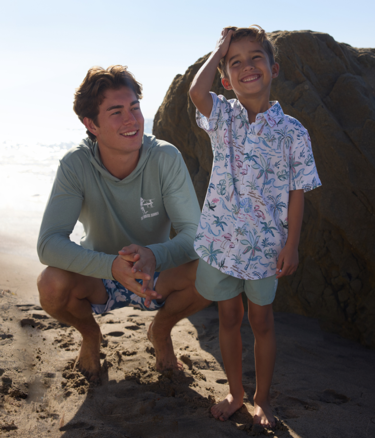 Boys Vintage Stretch Button-Down - Watercolor Turtle Print