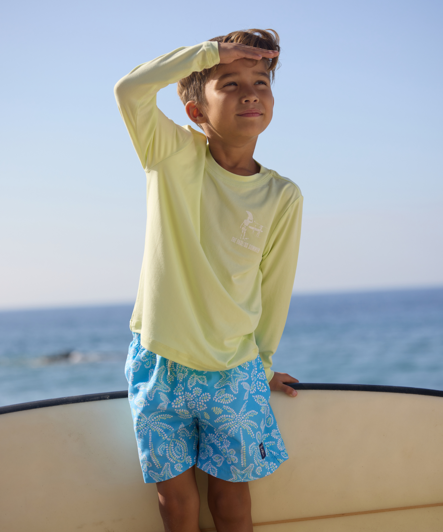 Boys Vintage Stretch Swim Short - Watercolor Turtle Print