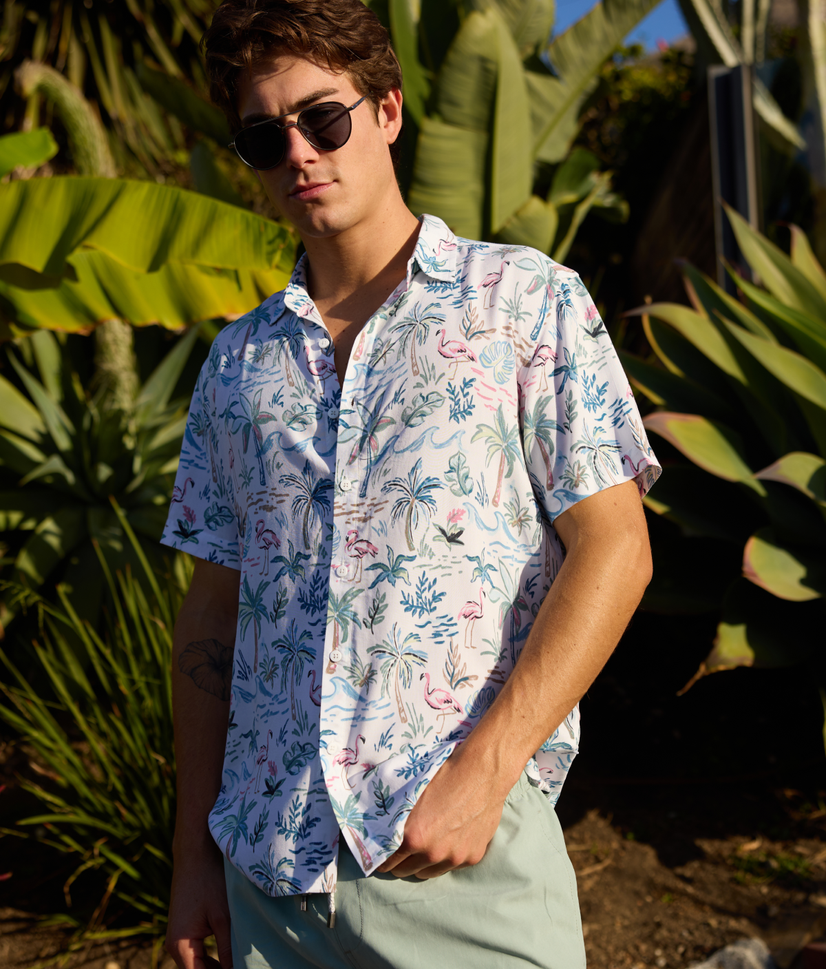 MENS BEACH PIQUE BUTTON DOWN - WHITE